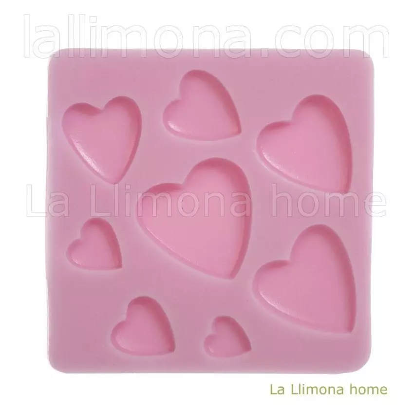 Molde de silicona con formas de corazones.Útil para modelar en repostería.Producto apto para uso alimentario.Medidas: 7.40 x 7.40 x 1 cm.Material: Silicona.Peso: 0.045 kg.