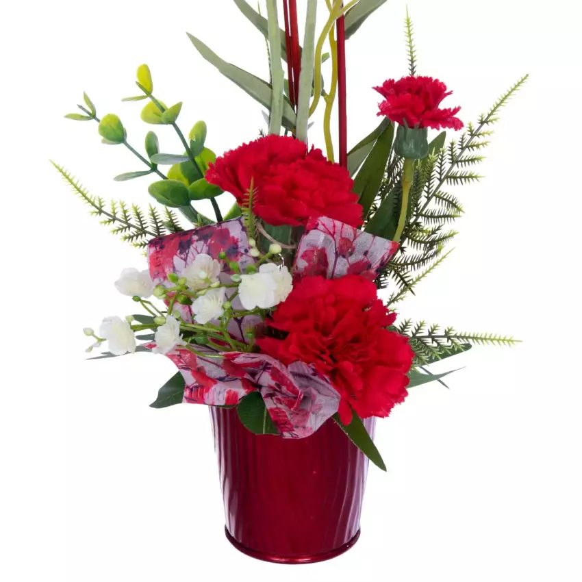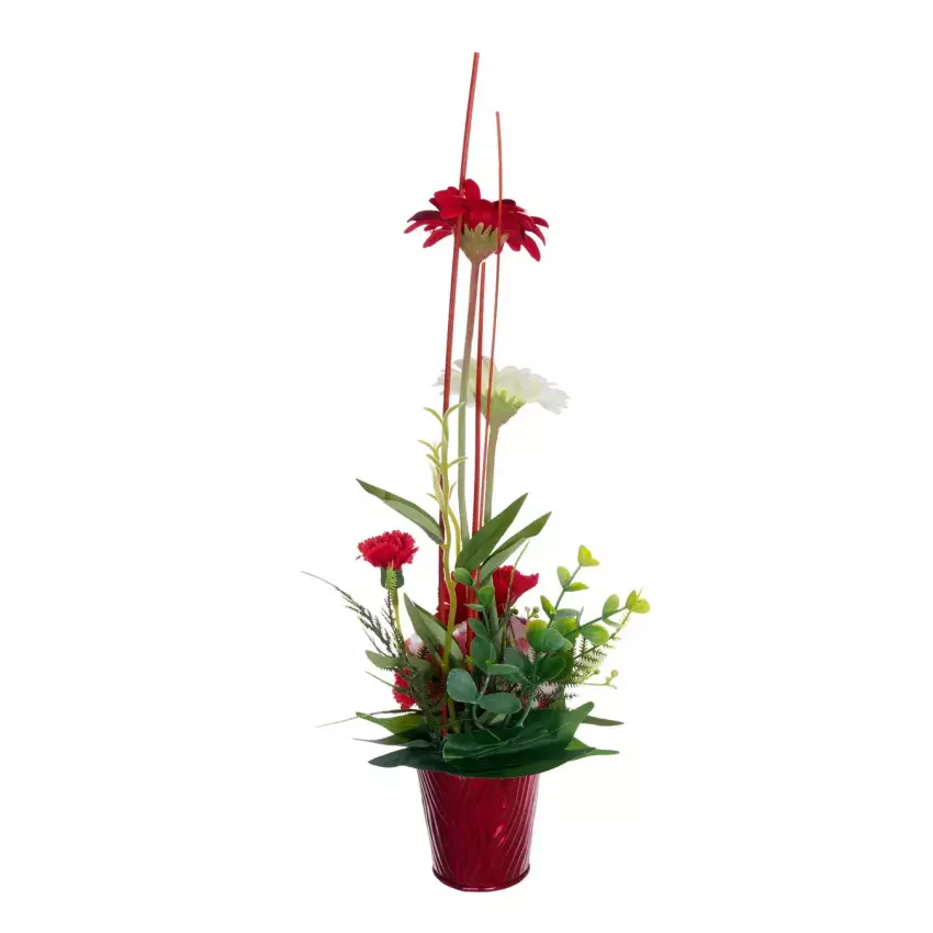 Arreglo floral liliums y rosas artificiales rosadas maceta 42