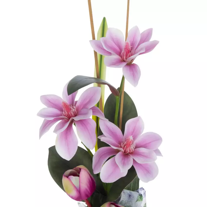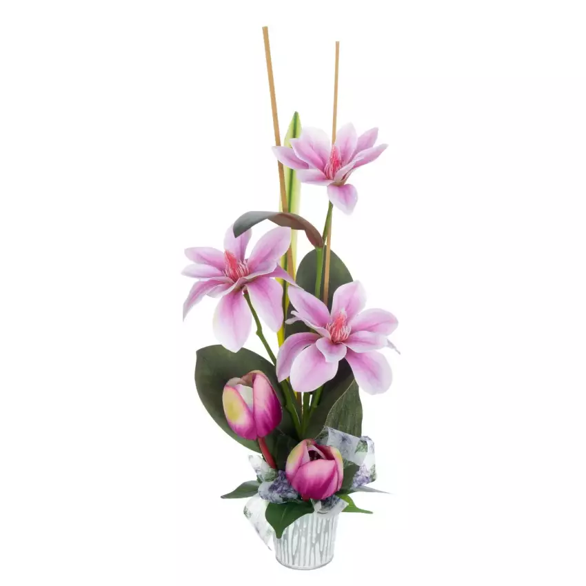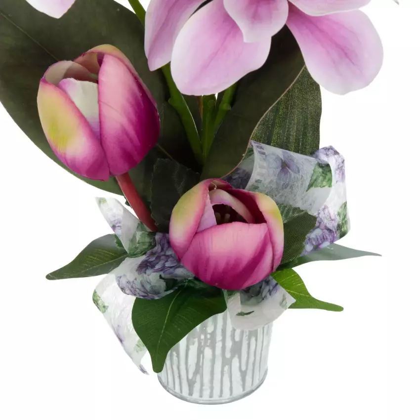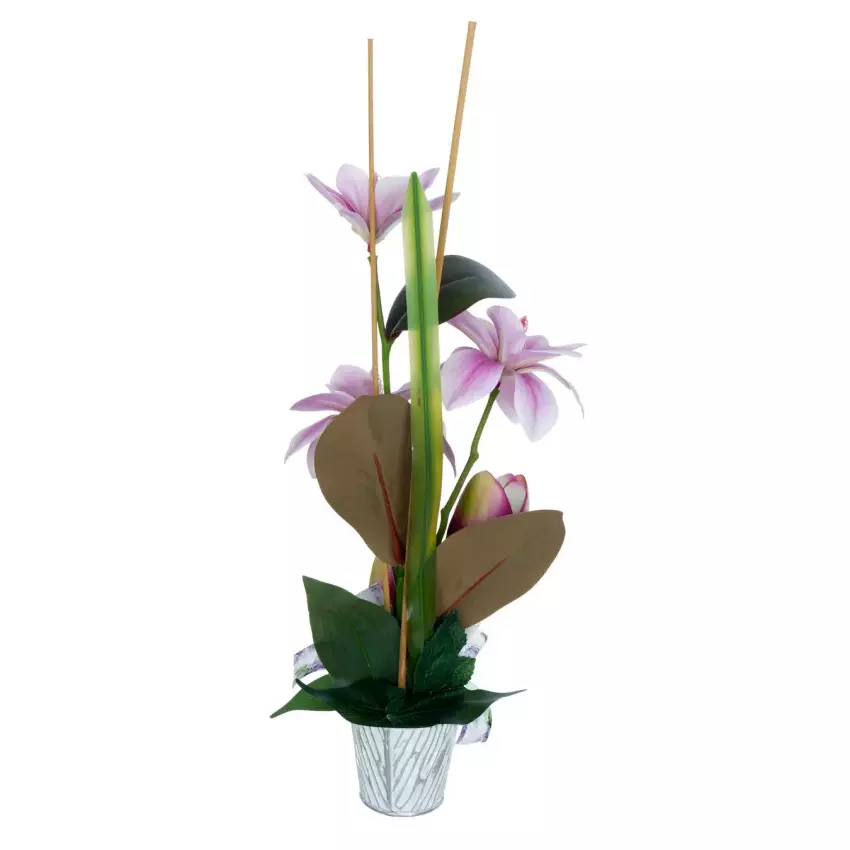 Arreglo floral rosas artificiales bicolor maceta 14