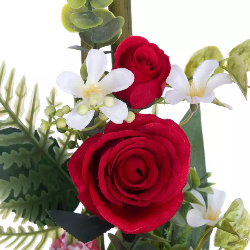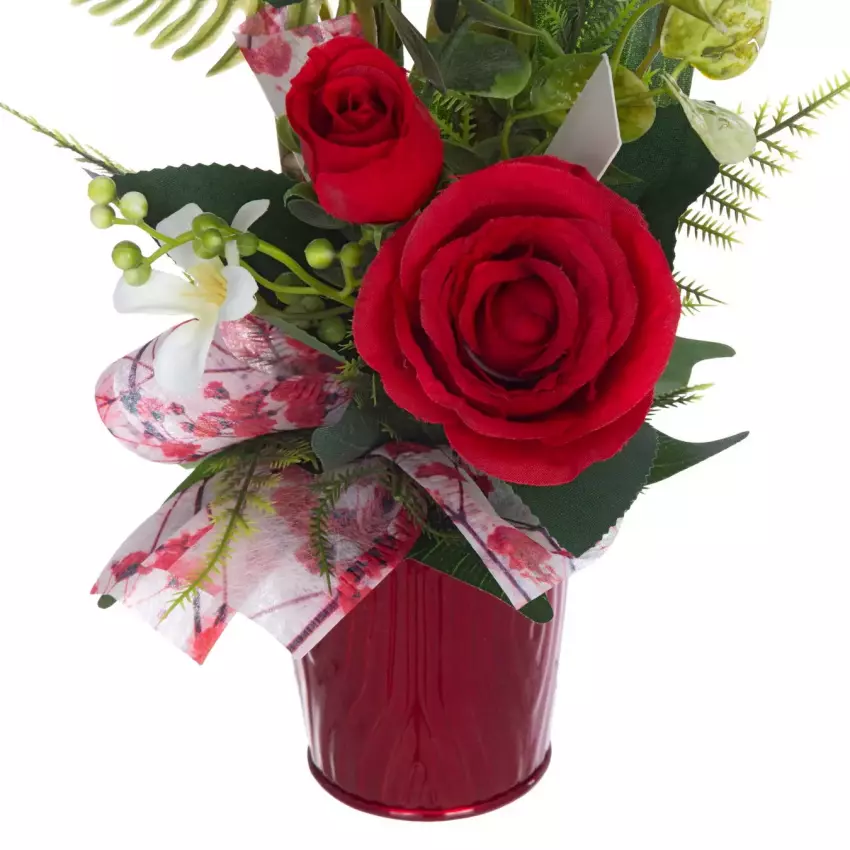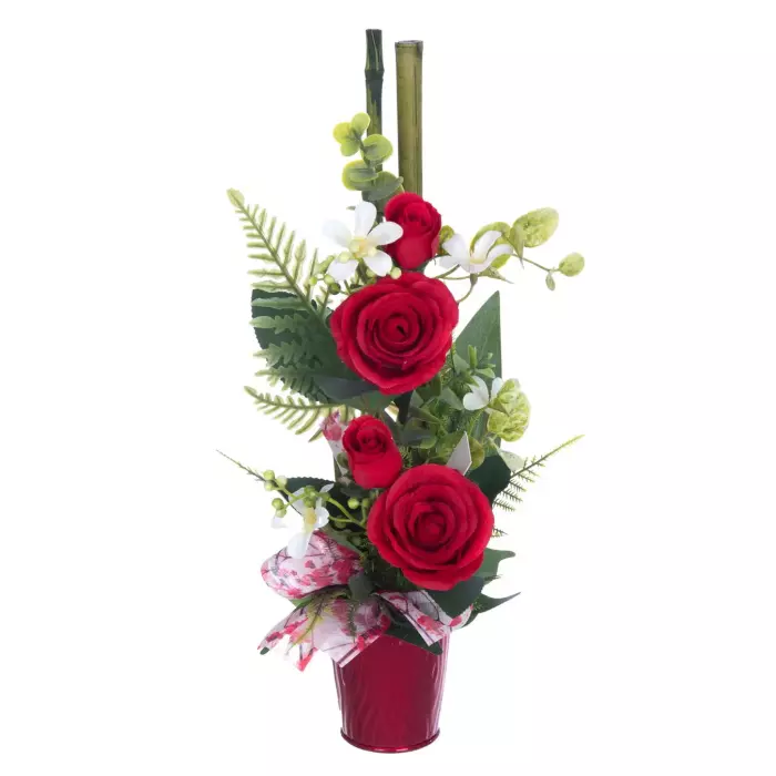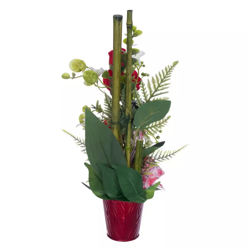 Arreglo floral gerberas y rosas artificiales cereza maceta 41