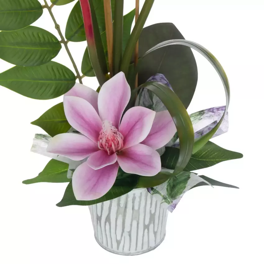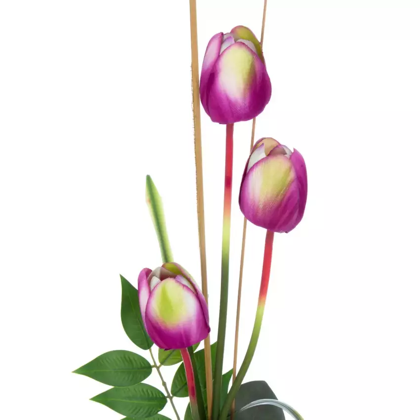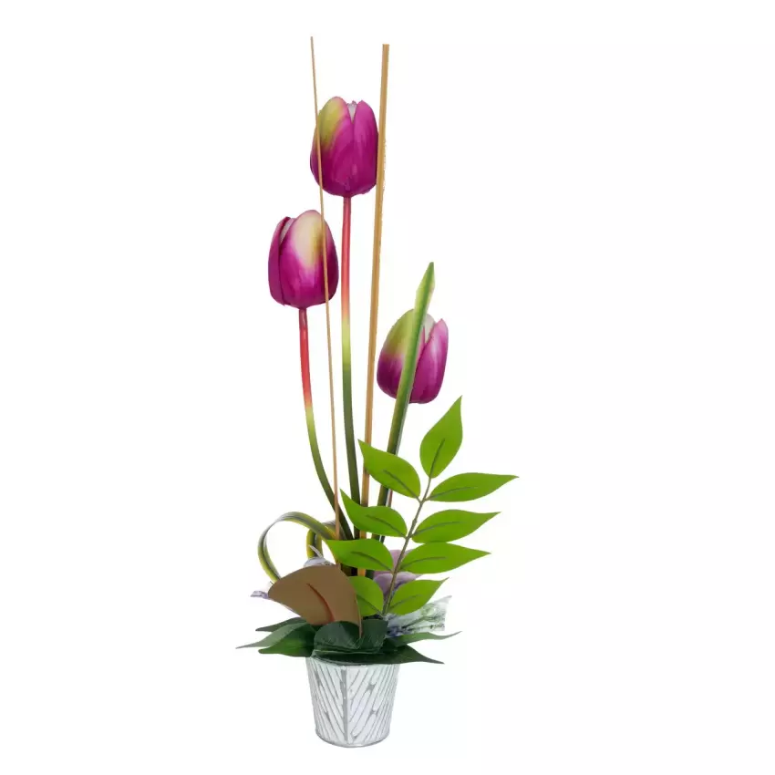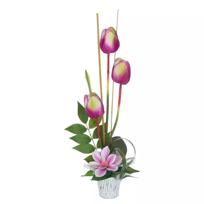 Arreglo floral tulipanes y magnolias artificiales malva maceta 46