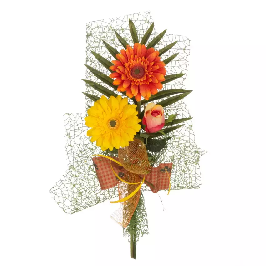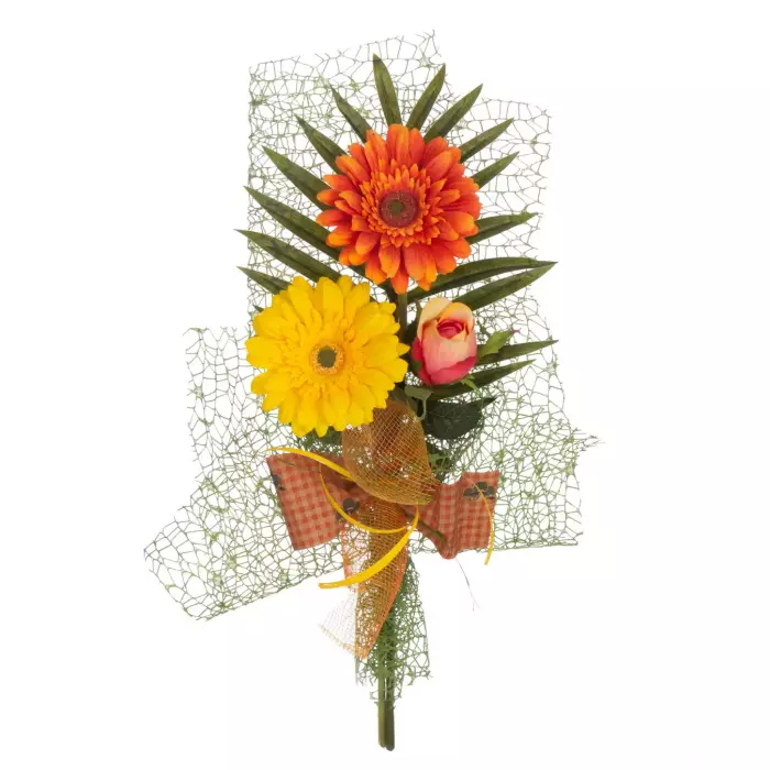 Ramo artificial gerberas y rosa naranja amarillo 55