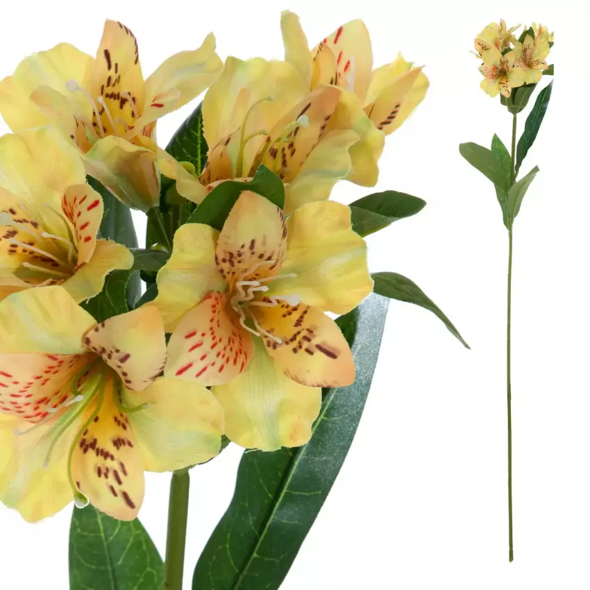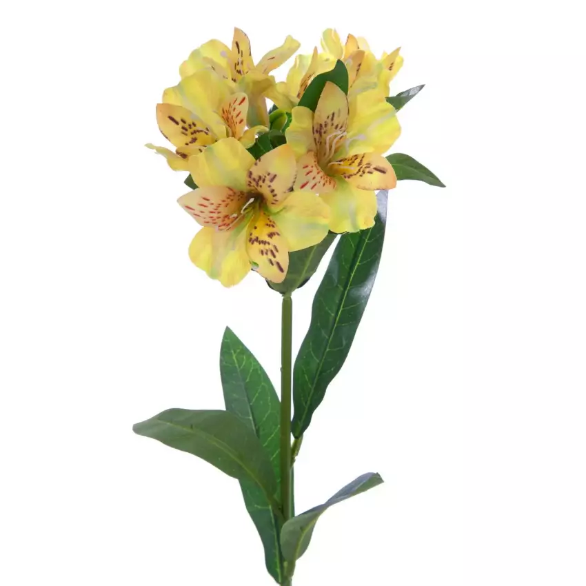 Flor alstroemeria artificial amarilla con hojas.