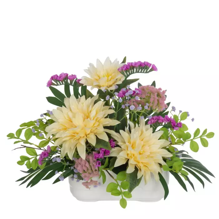 Jardinera cementerio flores artificiales dalias y freesias amarillo 33