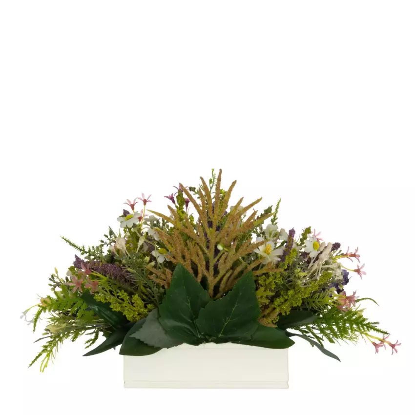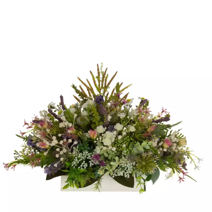 Jardinera cementerio flores artificiales rosas y lilums blanco 17