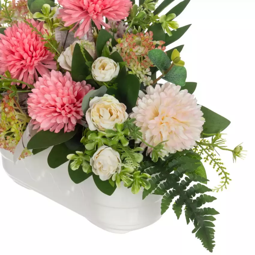 Jardinera cementerio flores artificiales pom pom y rosas crema 27