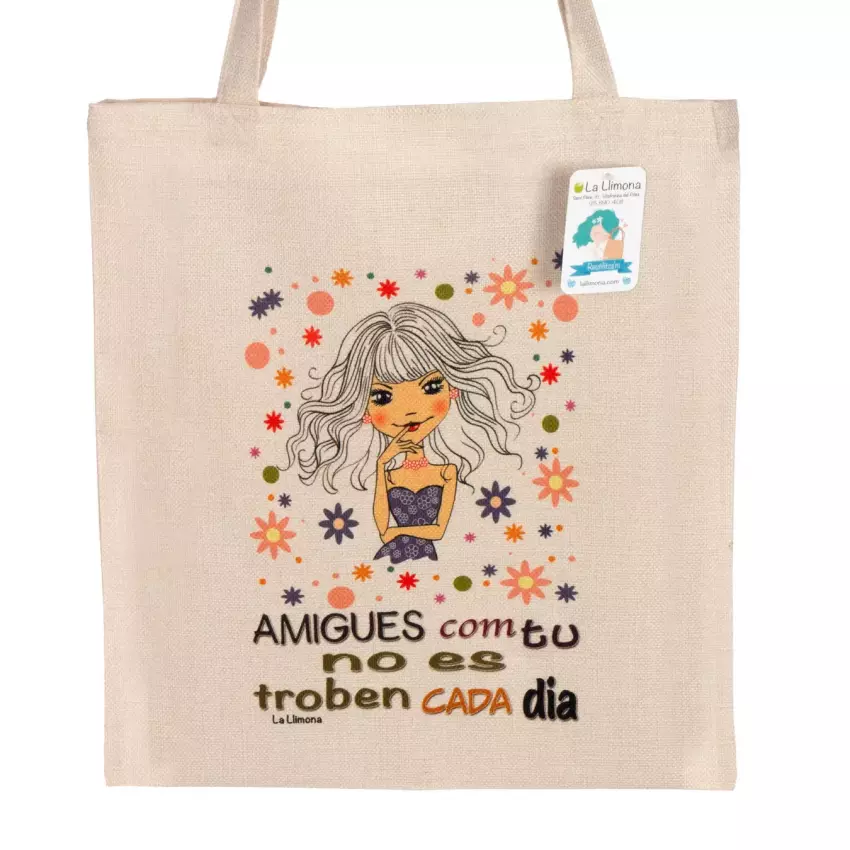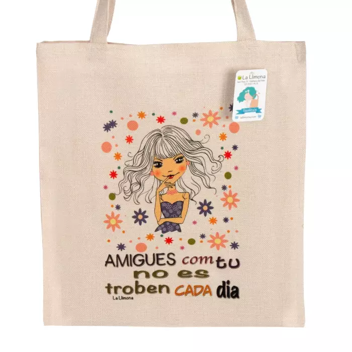 Tote bag 'Amigues com tu no es troben cada dia'.