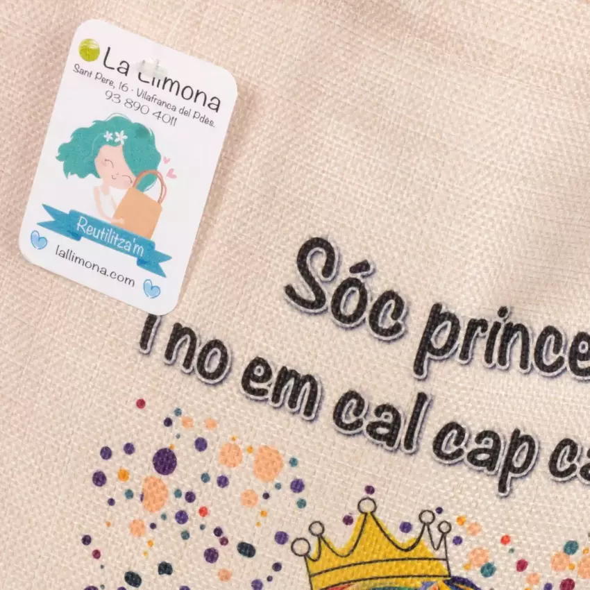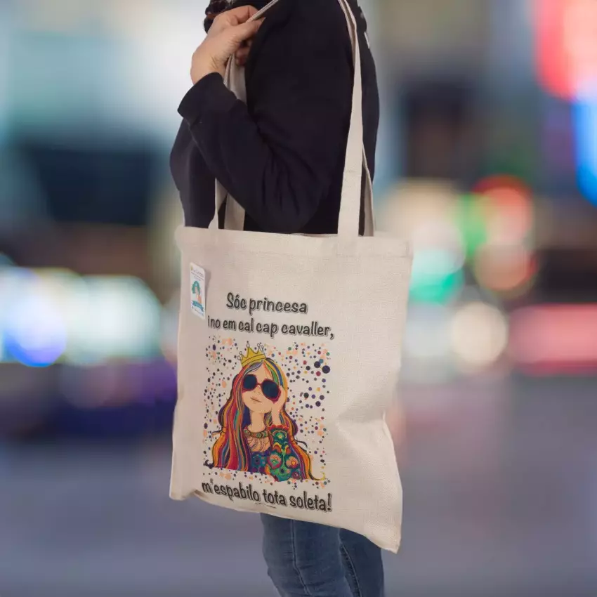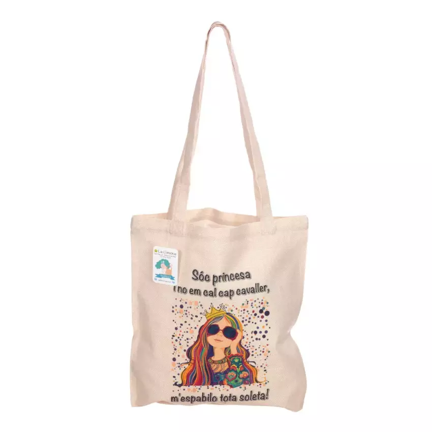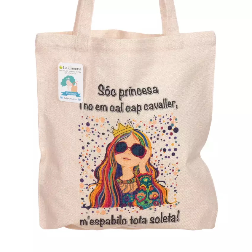 Tote Bag Bolsa de asas 'Sóc princesa i no em cal cap cavaller, m'espabilo tota soleta!'